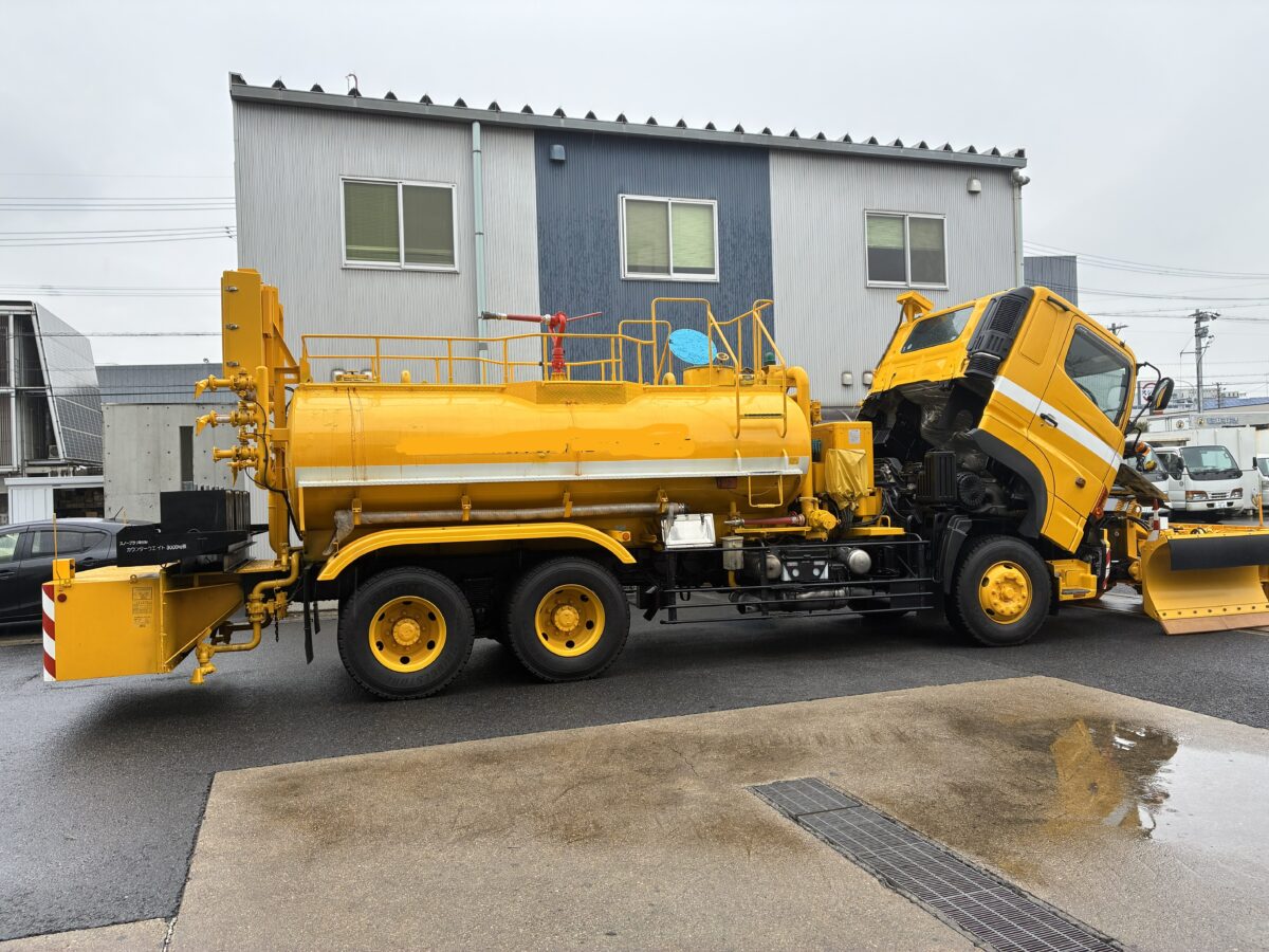 ほかの写真も見る 2025.12.25 10t散水車(10m3、スノープラウ3つ折式)、平成16年製 入庫 極東開発工業(シャーシ 日野) 販売価格:8,500,000円(税別) 極東開発工業製、10t散水車(塩化ナトリウム製、液体散水用) シャーシ日野製、KS-FS1EPWA型、10tシャーシ 車両総重量:21,970kg、最大積載量:9,500kg、走行距離9,800km この商品について問い合わせる 車両総重量:21,970㎏、最大積載量:9,500kg 岩崎工業製スノープラウ、油圧駆動式、3ツ折れ 走行距離:9,800km(2025年12月時点)